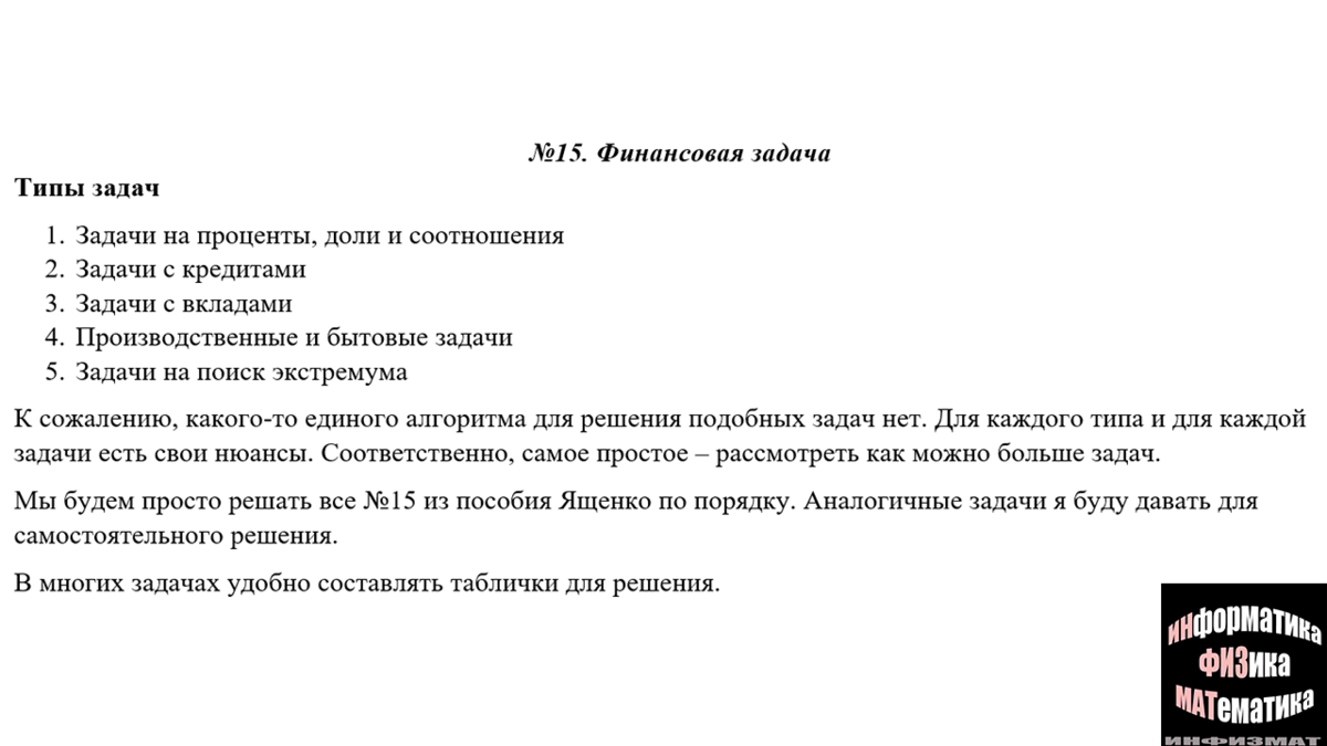 Для №15 я разделю статьи на 2 части. Рассматриваем задачи из пособия Ященко "Математика. Профильный уровень" 2022 года.