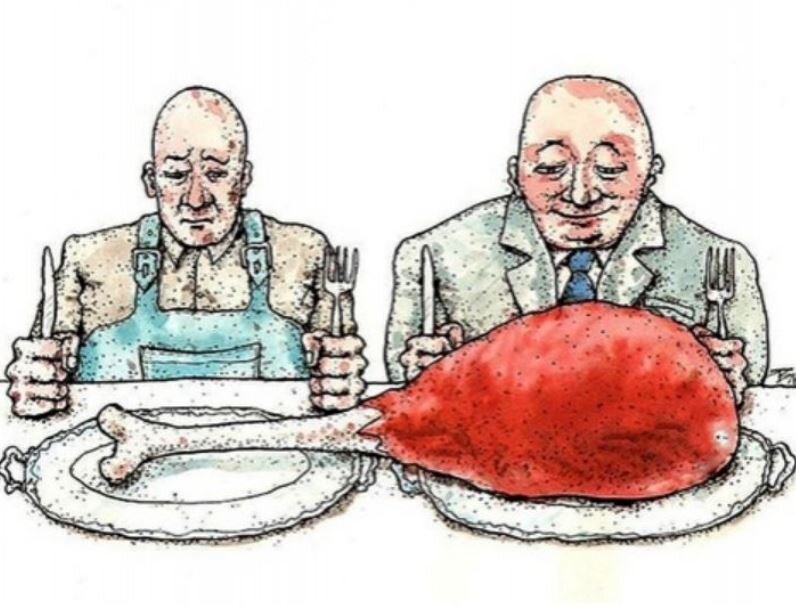 Идут годы, у богачей растут аппетиты, они плодятся и размножаются, для удовлетворения своих потребностей им требуется всё больше, поэтому пользуясь властью, они и забирают большую часть национального дохода на свои нужды.