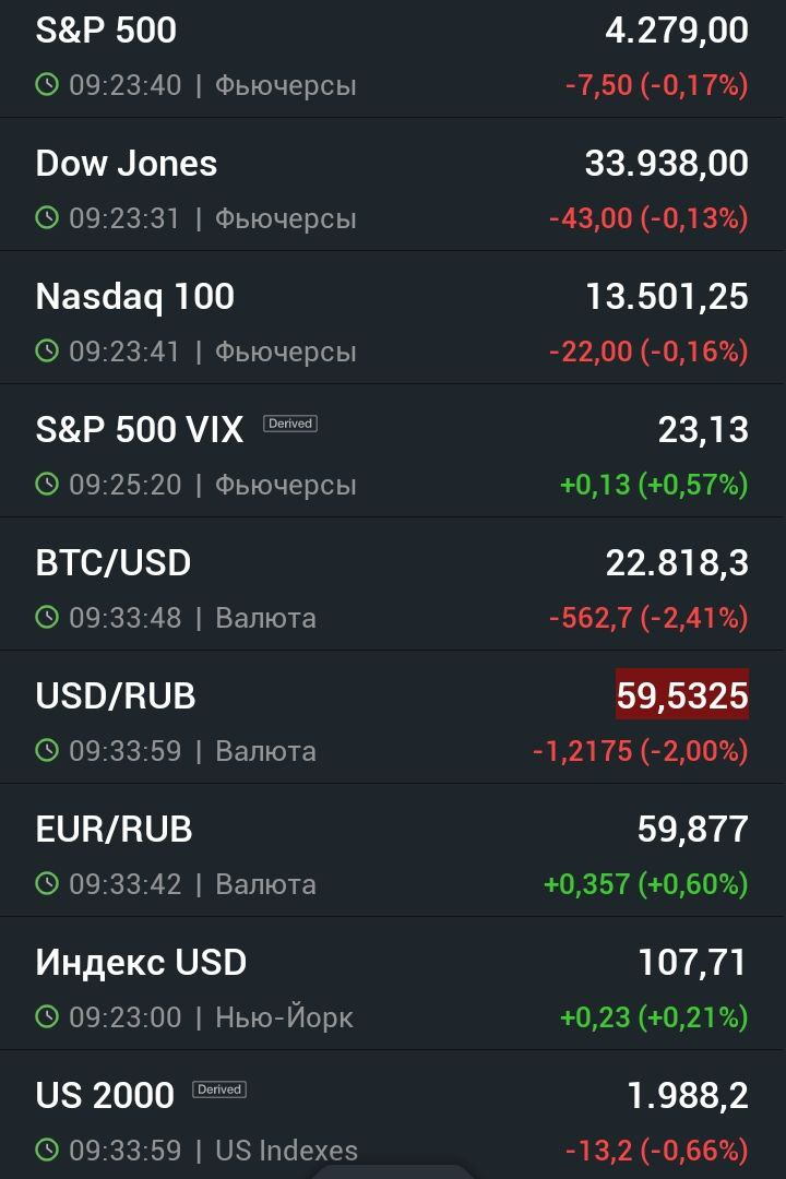 Начну с отличной новости: СД «ФосАгро» рекомендовал выплатить финальные дивиденды за 2021 год и за 1 полугодие 2022 года в размере 780 руб (окончательное решение будет принято 21 сентября). Обещать не значит жениться, но мы верим 😁 Тем временем рубль снова играет против экспортёров и вчера сначала опустился ниже 60, а позже и ниже 59 руб/$. Причина тому очередной налоговый период. Крепкий рубль буквально кричит инвестору: покупай иностранные акции! Хэджируй риски в надёжных валютных активах. 🥳Удивительно, но несмотря на ограничения граждане РФ в июне увеличили сумму валютных депозитов в иностранных банках до 4,7 млрд$, что стало максимумом с начала 2018 года. А собственно, почему бы и нет? С ростом ставок в США - депозиты становятся всё привлекательнее. Порадуемся за соотечественников 👏. Между тем мировые площадки вчера торговались без особой динамики, а азиатские площадки сегодня корректируются. 🔸 Dow Jones вырос на 0,06%, 🔸 S&P 500 прибавил 0,23%, 🔸 Nasdaq прибавил 0,21%. Ин