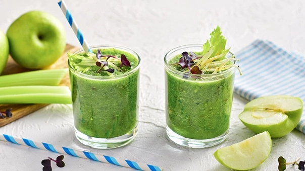 Зеленый смузи с сельдереем, яблоками, шпинатом и огурцами. Только представьте себе, сколько пользы принесет такой смузи Вашему организму, особенно, если пить его регулярно! Конечно, в идеале для приготовления хорошо бы использовать проверенные ингредиенты, например, свежесобранные на вашей даче. Но если вы возьмете просто качественные продукты, то зеленый смузи тоже получится весьма ценным для Вашего здоровья. С такого напитка можно начать утро или же поддержать силы днем, тем более что на приготовление этого натурального «энергетика» уйдет не более 10 минут, включая обработку ингредиентов. Ингредиенты: 2 зеленых яблока 2 стебля сельдерея 2 средних огурца 100 г шпината 1-2 ст. л. лимонного сока 100 мл минеральной воды мед по вкусу Приготовление: 1. Яблоко вымойте и обсушите бумажным полотенцем. Разрежьте пополам, удалите сердцевину с семенами. Мякоть нарежьте тонкими дольками. 2. Свежий огурец вымойте и обсушите. Нарежьте ломтиками. Стебли сельдерея тщательно промойте и