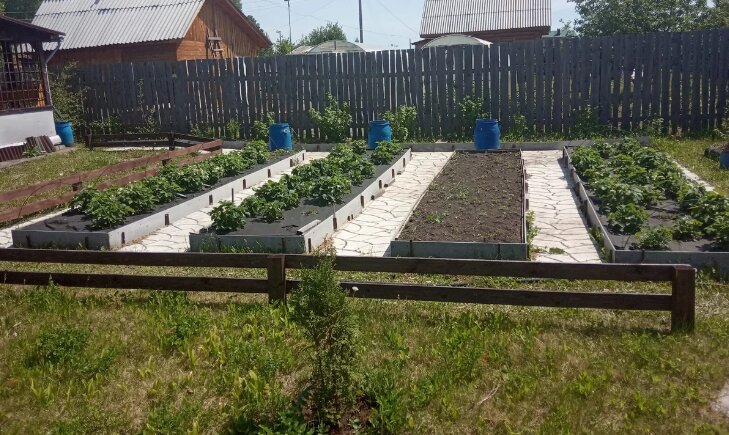 Теперь вопрос встал как делать дорожки между грядками. Точнее, что применить? На даче заливал бетон, можете посмотреть на фото.