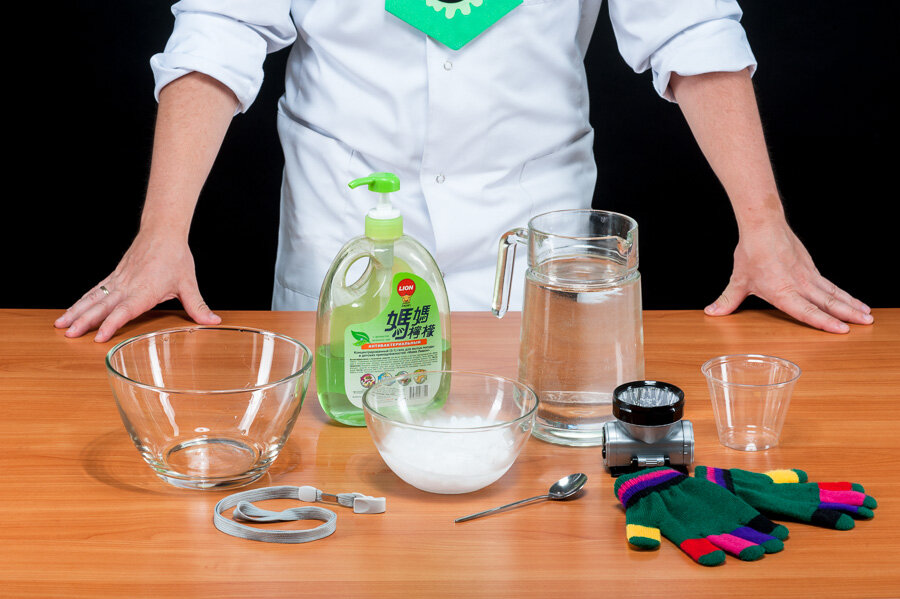 Надуваем огромный мыльный пузырь Как получить огромную мыльную полусферу, наполненную углекислым газом? Нам потребуется: - сухой лёд; - миска с тёплой водой; - защитные перчатки; - шнурок (хорошо подойдет шнурок от бэйджика); - стакан; - жидкое мыло или средство для мытья посуды Внимание Сухой лёд имеет очень низкую температуру, поэтому трогать его можно исключительно в перчатках и проводить опыт необходимо только вместе со взрослыми. Ход эксперимента: - Наполовину наполняем стакан тёплой водой, добавляем в него немного жидкого мыла и хорошенько перемешиваем. - Опускаем в стакан шнурок, так чтобы он пропитался мыльным раствором. - В миску с тёплой водой добавляем горсть сухого льда. - Берём шнурок, отжимаем из него лишнюю влагу и аккуратно проводим им по поверхности миски так, чтобы образовалась мыльная плёнка. - Появляется красивая мыльная полусфера! Вот это да! Почему так происходит? После добавления в тёплую воду сухого льда начинает выделяться углекислый газ. Как только мы провели
