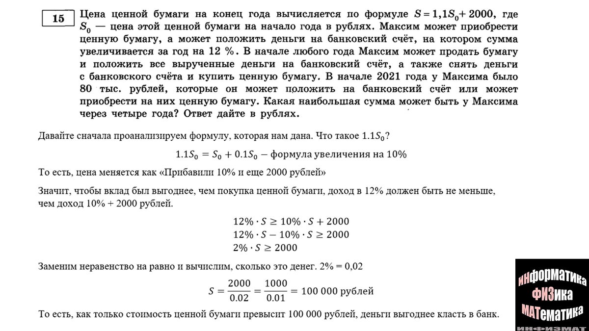 Я разобрала разные виды задач, однако в этой половине оказалась целая куча аналогичных задач, разобранных, в том числе, и в предыдущей части. Я также их оставила потренироваться самостоятельно. Итак. Вторая часть финансовых задач.