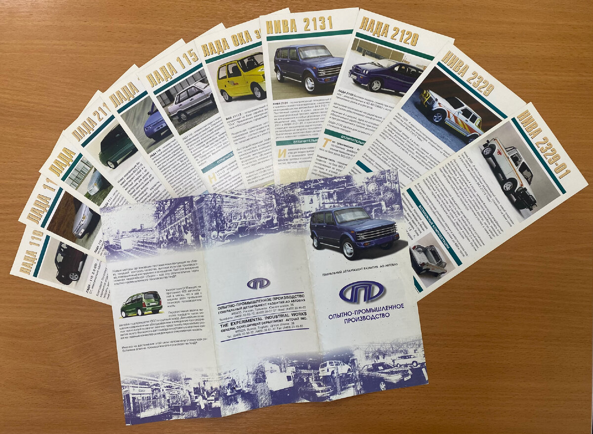 В 1996 году вышел вот такой полиграфический набор о работе опытно-промышленного производства АВТОВАЗа. Он содержал информацию и подробные описания 11 моделей автомобилей, которые на тот момент выпускались мелкой серией на тольяттинском мини-автозаводе. Из них 4 были внедорожниками: 5-местная удлинённая НИВА 2131 и модификация 2131-01, 2-местный пикап НИВА 2329-01, 4-местный пикап НИВА 2329 и полноприводный минивэн ЛАДА 2120 (названия моделей приводятся согласно публикуемого источника). Кстати, экс-директор ОПП АВТОВАЗа, Сергей Перевезенцев как-то рассказал нам предысторию о том, как было принято решение о разработке полноприводных пикапов Лада. В начале 90-х годов прошлого века оживилась совместная работа с американскими партнёрами и много спецалистов Волжского автозавода командировались в США для проведения опытно-конструкторских работ. Одажды во время рутинной поездки по "хайвею" вазовцы решили подсчитать сколько пикапов движутся по американскому шоссе. Одни считали обычные легковы