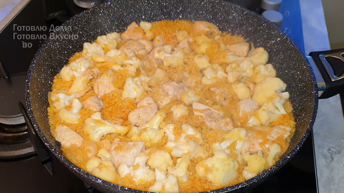 Готовлю булгур с куриной грудкой, цветной капустой и приправами по домашнему рецепту (делюсь рецептом)