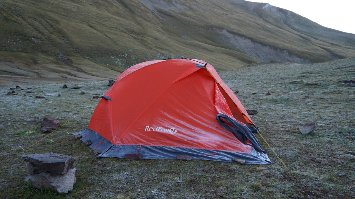 Утро нас встретило прохладой. Тент палатки был покрыт тонкой корочкой льда, а нам пришлось надеть теплые куртки, в ожидании теплых солнечных лучей. Пока мы завтракали, солнечный свет медленно полз по склону нашего сегодняшнего перевала, приближаясь к нашему лагерю. Мимо почти незамеченным проехал неторопливый всадник, видимо пастух. Дождавшись солнышка, мы немного просушили тент палатки, собрали вещи и выдвинулись в путь. Поднявшись из низины, в которой лежало озеро, мы вышли на тропу ведущую к перевалу Чилик. Подъем на перевал довольно пологий и мы без особых усилий на него поднялись. Со стороны озера Чилик, на перевал тоже поднималась группа. Чтоб не толкаться на тропе и не спустить ни на кого камень, было решено дождаться пока они все поднимутся. Погода была безоблачной и я в попытке поймать связь забрался немного повыше, но ни теле2, ни мтс, не ловили. К тому времени, когда я спустился назад, большая часть группы уже вышла на перевал. Становилось тесно. Дождавшись последних, начали