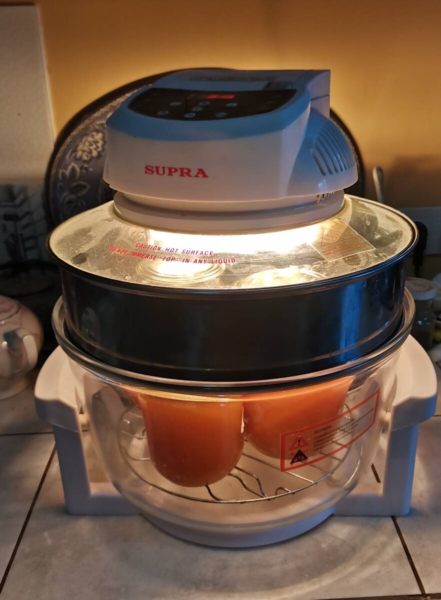 Тот, кто занимается заготовками на зиму, знает, какое хлопотное дело- стерилизация банок. Теперь можно не стоять у раскаленной плиты в жару и не ждать, когда банки простерилизуются. Если у вас есть аэрогриль, это займет 15 минут. У нас в этом году огромный урожай абрикосов. Сначала я сделала варенье, которое быстро варится и хранится в холодильнике. Но вскоре стало ясно, что холодильник столько не вместит. Часть абрикосов я заморозила. Но потом мы вспомнили, что абрикос год цветет, год отдыхает. И чтобы не остаться без вкуснейшего без преувеличения варенья, такого ароматного и чудесного на вкус, мы решили сварить варенье и закатать в банки. Так и возник вопрос про стерилизацию. Сначала я сварила варенье. Банки вначала промыла под проточной водой. Затем каждую из них помыла с содой и ополоснула кипятком, насухо вытерла. То же проделала с крышками. Вскипевшее варенье разлила по подготовленным банкам. Поставила банки в аэрогриль, прикрыв крышками. Для банок объемом , 0.5 л; 0 ,75 л; 1 л
