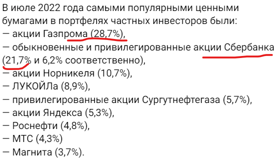 И при этом, говоря о Сбере и Газпроме, мы даже не затрагивает того, что из этих бумаг ещё не вышли нерезиденты, а там их пруд пруди...