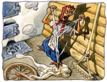 Объявилась она у печки. Худая, уродливая. Лохмотья висят как болотная трава, шею рябую ярмо тяжелит. Нос крючком и в бородавках, волосы седые лицо закрывают. Посмотрел на нее Никола через свечку и задрожал от страха.
