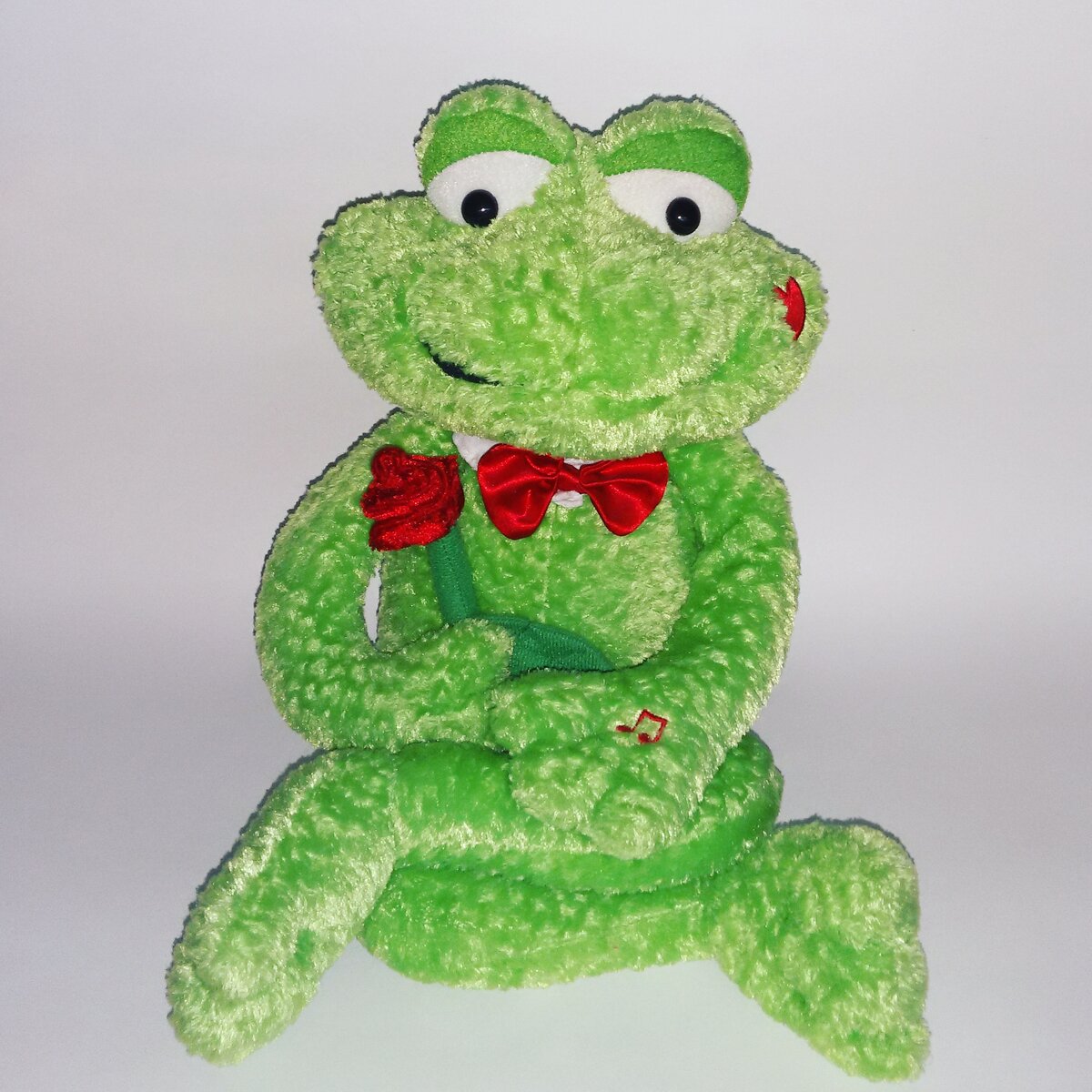 Во время учёбы в университете я активно расширяла свою плюшевую коллекцию — друзья этому способствовали… Лягушонок тоже подарок. Он музыкальный и очень разговорчивый: если нажать на левую лапку, то он споёт песенку, при этом забавно мотая головой и широко открывая рот. Бабочка на шее и роза в правой лапке добавляют комичность образу:). Мягкая игрушка «Лягушонок» (высота 45 см)