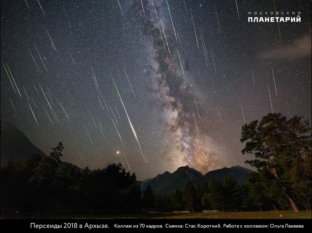 В августовские ночи жители всего Северного полушария Земли могут любоваться самым популярным и ярким «звездным ливнем» года – в середине августа наступает максимум яркого метеорного потока Персеиды! В ночь с 11 на 12 августа произойдет пик знаменитого летнего звездопада Персеиды. А это означает, что при благоприятных погодных условиях и отсутствия городской засветки начиная с полуночи и всю ночь можно наблюдать до 100 метеоров в час, или 1-2 метеора в минуту! Условия наблюдения Персеид в 2022 году – неблагоприятные. В ночь максимума полная Луна существенно помешает наблюдению метеоров. По данным международной метеорной организации (https://www.imo.net/resources/calendar/#Perseids) ожидается до 100 метеоров в час. Метеоры можно наблюдать при благоприятных погодных условиях и отсутствии городской засветки. Итак, подробнее о Персеидах: Когда?