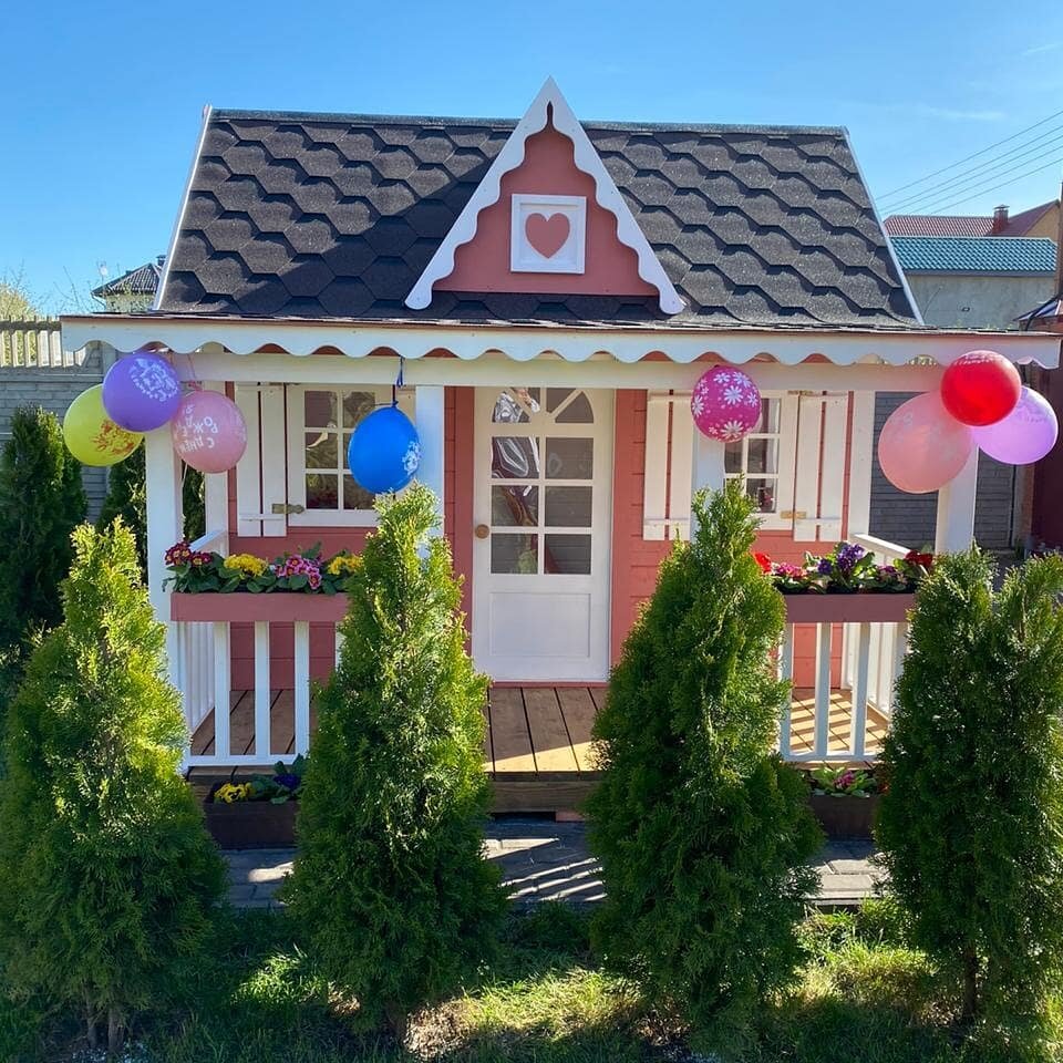 Оригинальный и красивый детский домик как украшение участка!
