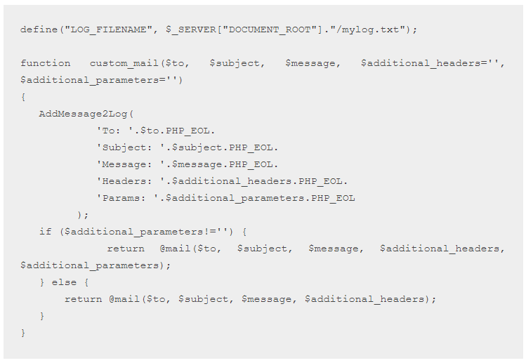 Как настроить отлов писем с bxmail через добавление кода в dbconn.php. Для этого Вам потребуется в dbconn.php установить следующий код: Лог почты будет находится в файле mylog.txt в корне сайта.