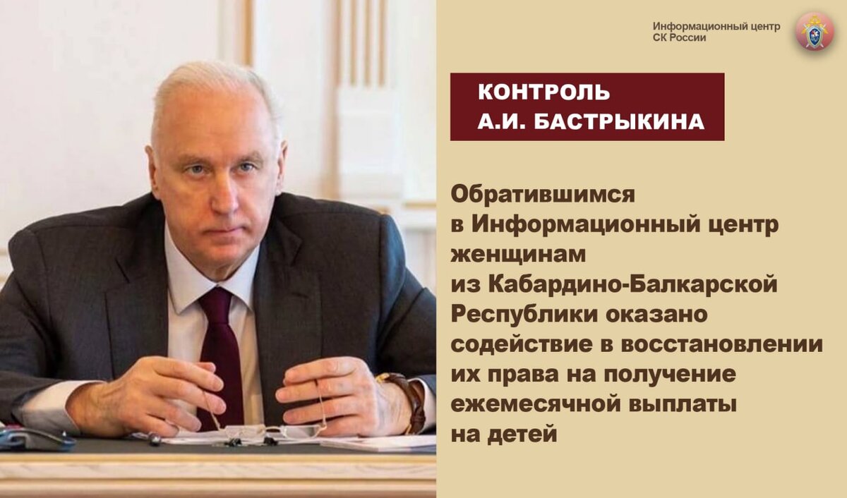 Обратившимся в Информационный центр женщинам из Кабардино-Балкарской Республики оказано содействие в восстановлении их права на получение ежемесячной выплаты на детей