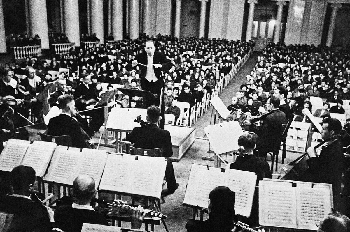 Нелёгкая работа — собрать симфонический оркестр в таких условиях! Поручено это было дирижёру Большого симфонического оркестра Ленинградского радиокомитета Карлу Ильичу Элиасбергу. Большого — это сильно сказано, ибо из сотни музыкантов осталось в оркестре только 27, да и те были сильно истощены.