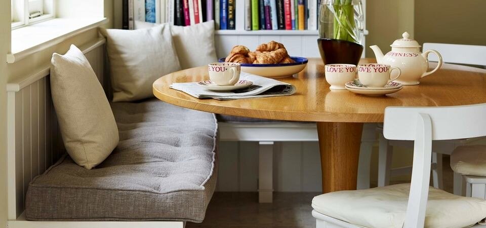 Думаете, кухонные уголки устарели и отжили своё? Всё не так! Они могут быть даже удобней и практичней стульев. Но нужно знать, как их выбирать. Сравниваем уголки и стулья и разбираемся, что лучше! Кухонный уголок Кухонный уголок – очень удобная и уютная мебель, подразумевается, что на такой кухне проводят много времени за столом. На диванчике помещается больше людей, но сам уголок занимает довольно много места, при этом не имеет мобильности. Поэтому не место для сидения двигаем к столу, а стол к нему. Кухонный уголок может иметь как угловую форму, так и П-образную, если размеры кухни позволяют. Покрытие уголка может быть: Диваны из кожи или эко-кожи считаются более практичными из-за того, что за ними легче ухаживать. Пятна легко убираются при помощи специальных средств по уходу за такой мебелью. Единственное условие – пятна нужно удалять сразу, после их появления. Ухаживать за тканевой обивкой сложнее. Кухонный уголок может иметь ножки или тумбы для хранения вещей, которые используются