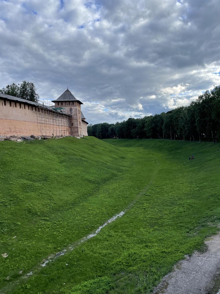 Итак, что посмотреть и каким маршрутом мы ходили? 1й вечер- мы увидели территорию Кремля, его храмы, памятник Тысячелетию России, Горбатый мост, Аркаду Гостинного двора, Церковь Успения Пресвятой Богородицы на Торгу, Николо-Дворищенский собор и другие рядом стоящие храмы, старые улочки заречья, крепостной вал. Как я уже писала, мы приехала около 17 часов, заселились в съемную квартиру и примерно через час выдвинулись гулять. По Новгороду надо ходить именно пешком, он очень удобен для этого - расстояния небольшие и есть скамейки для уставших туристов, много приятных мест посидеть - парки, бульвары. Вечер теплый, летний - отличное время для прогулок по старому городу. Поэтому мы и пошли к Кремлю. Зайдя на территорию, а она небольшая, и погуляв по ней, идём через противоположные ворота на Горбатый мост. Перейдя по Горбатому мосту, с которого открываются прекрасные виды на город, попадаешь в небольшой парк, окруженный старинными сооружениями- храмы монастырей, Аркада гостинного двора. Оч