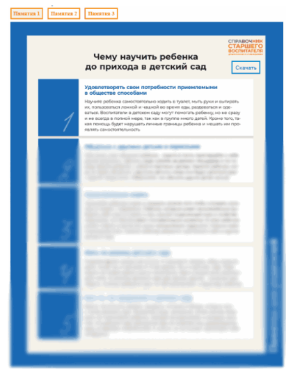 Предложите родителям три памятки с информацией, как подготовить ребенка к переменам и чему его научить, а также рекомендациями, как родителям вести себя с ребенком в период адаптации. Недостаток знаний родителей и их гиперопека усугубляют состояние ребенка, затрудняют адаптивные процессы в первые дни и недели в детском саду. Проинформируйте их и дайте понятные рекомендации, которые родители смогут самостоятельно выполнить. Проведите личные встречи, индивидуальные консультации и раздайте родителям памятки. Из них они узнают, чему научить ребенка до прихода в детский сад и как вести себя с ребенком во время адаптации. Памятки для родителей Памятки для родителей Скачать памятки #образование #детский сад #воспитатель #дошкольноеразвитие