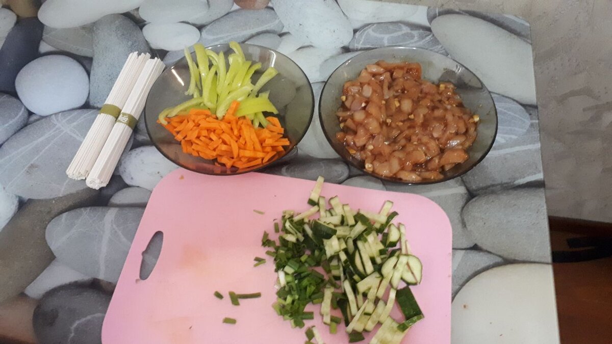 Начну пожалуй свой канал с моего любимого блюда — лапши вок с курицей. На протяжении 2 лет я пробовал разные рецепты, технологии, ингредиенты и продукты, чтобы выверить идеальную формулу приготовления данного блюда в домашних условиях, об одной из которых я вам сегодня поведаю. Ингредиенты: Изначально в лапшу вы можете добавить всё, что угодно, начиная с курицы, заканчивая морепродуктами с капустой, в этом ограничений нет. Но сегодня мы рассмотрим вариант с курицей. Маринад: Возьмите соус терияки, можете конечно и сами сделать, но это долго и кто будет его варить если проще купить в магазине? Я использую данный соус т.к. он относительно дешёвый и я знаю, что он четко тратится на целый казан в зависимости от порций конечно, но чаще всего один пакет. На 2 куриных грудки вылейте пол пакета соуса и добавьте 2 мелко нарезанных зубчика чеснока, достаточно буквально 10-15 минут оставить курицу в этом маринаде. Из овощей у нас идут болгарский перец (лучше взять разноцветные т.к. люди едят гла