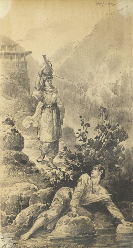 Девушка с кувшином на голове пробирается к источнику и набирает воду. Мцыри с замиранием сердца следит за ней, прийдя в себя, лишь когда та возвращается в хижину и закрывает за собой дверь. Молодой человек сетует, что старик не понимает его печали.