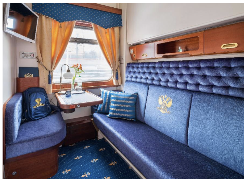Для пассажиров предусмотрена комната, в которой есть все необходимое: рабочий стол, шкаф и двуспальная кровать. Также есть 4 спальных купе, где верхняя полка - односпальная, а нижняя - полутороспальная. В каждом купе есть персональная туалетная комната. Вагон класса "Империал", вместимость до 4 человек Представляет собой комфортное средство передвижения. Он совмещает в себе все свойства отеля 5* и, одновременно, рабочего кабинета. Для пассажиров предусмотрена комната, в которой есть все необходимое: рабочий стол, шкаф и двуспальная кровать. Также есть 3 спальных купе, где верхняя полка - односпальная, а нижняя - полутороспальная. В каждом купе есть персональная туалетная комната, оборудованная вакуумным туалетом, гидромассажной душевой кабиной. Вагон класса "Империал" 3 купе с барной зоной Для пассажиро