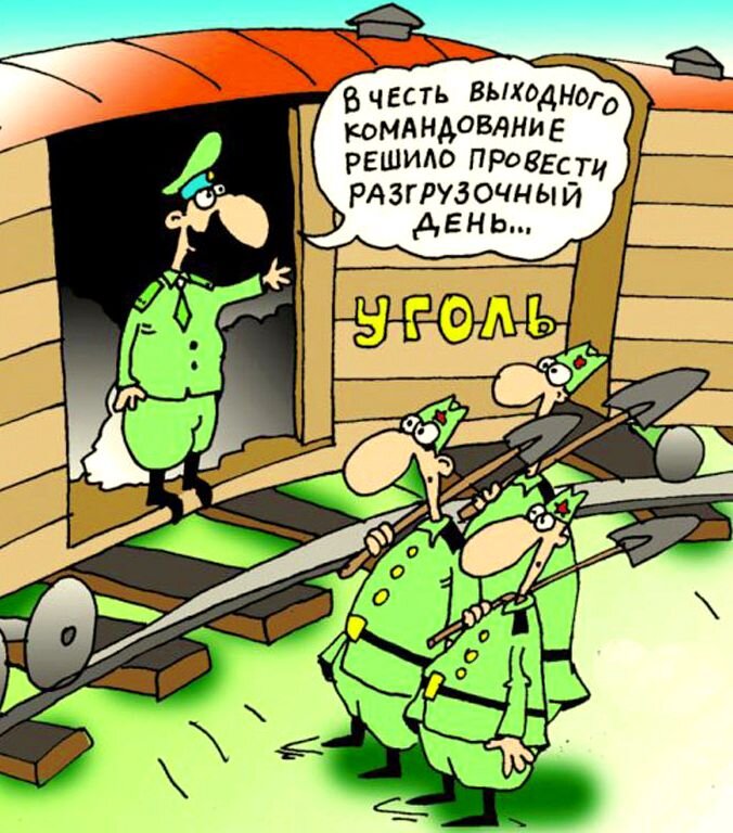 1.— Пойдут только добровольцы. Ты, ты, и ты. 2.— Рядовой Сидоров, почему вчера вас не было на учениях по маскировке? — Товарищ прапорщик, я был… 3.Из рапорта. Товарищ полковник, прошу доверить мне новую военную тайну, так как предыдущую я уже разболтал. 4.Встречаются два армейских товарища: — А я вот из гостей иду. Селедку под шубой кушал! — Да, я помню, ты в казарме тоже любил хлеб под одеялом кушать… 5.Если у 150 человек рядом с вами такие же сапоги — это не мода. Это армия. 6.Один в поле не воин, один в поле — топографический кретин. Битва не здесь! 7.— Вот вы, товарищи студенты, ничего не учите, а только с вопросами пристаете, и товарищ полковник все за вас делать должен. А ведь когда начнется война, товарища полковника рядом не будет. 8.— Папа, я не хочу идти в армию, сделай, чтобы меня не забрали… — Настоящий мужчина должен отслужить! — А почему в нашей семье я должен стать первым настоящим мужчиной?! 9. Заходит генерал проверить как дела в роте, а там как раз обед, но все сидят