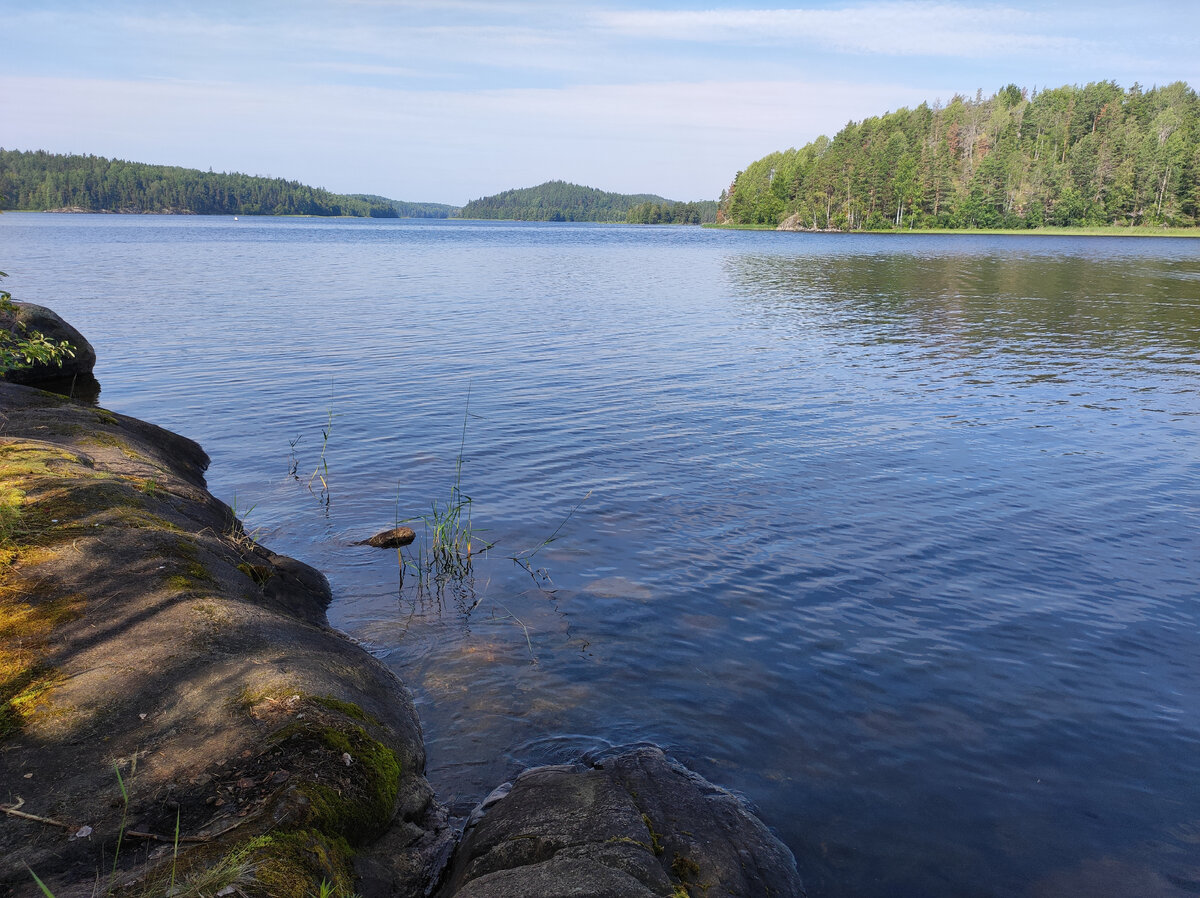 Ночь прошла как один миг. Видно недосып и усталость уже накопились. Вставать не хотелось. Снаружи задувал сильнющий ветер, казалось, что палатку снесёт. На деле же ветер, конечно, был и приятно обдувал в наступающую жару. Я прошлась по берегу, посидела у воды и понаблюдали за рыбаками. В этой бухточке ветра не ощущалось. После завтрака тянули жребий, кто пойдет на моторах, кто на вёслах и будет брать пробы воды. Остальным найдётся работа на берегу. Дежурные приступили к своим обязанностям по приготовлению пищи. Часть людей сортировали и подготавливали к погрузке мешки с мусором. Мы делали ещё один стол, который останется на этой стоянке. Работа продвигалась быстро, опыт сказывался. За два часа мы его сделали и покрасили. До обеда ещё оставалось время, которое скоротали купанием и спокойным отдыхом на берегу.