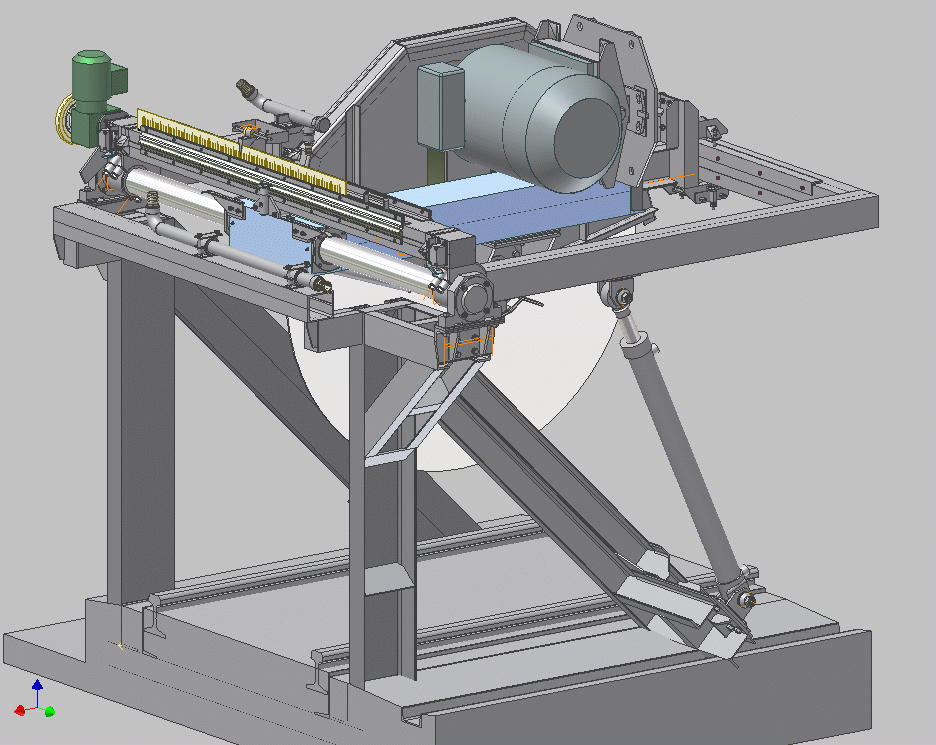 Выполнялось компанией интеллект-асу. Особенность проекта с точки зрения управления - обеспечение высокой точности перемещения объекта (гранитная глыба размером 1200х1200х600 мм) и режущего инструмента - диск диаметром около 1500 мм. Из гранитной глыбы нужно нарезать пластины толщиной порядка 10 мм. Одна пластина режется за 30 циклов движения тележки. Заготовка закреплена на тележке, у которой ход до 10000мм. Порядок работы: Задаются параметры в меню наладчика; Задаются параметры в меню оператора; Задаются передняя и задняя точки реверса, верхняя точка блока (перед каждым новым запуском цикла, без ввода этих параметров запуск цикла невозможен); При попытке установить глубину пропила больше, чем предельно допустимо (т.е. планшайба заденет камень): • контроллер автоматически уменьшает глубину до максимально допустимого значения; • выдается текстовое и звуковое предупреждение оператору. В случае, если глубина пропила задана больше, чем может опустить раму гидроцилиндр: • контроллер выдает