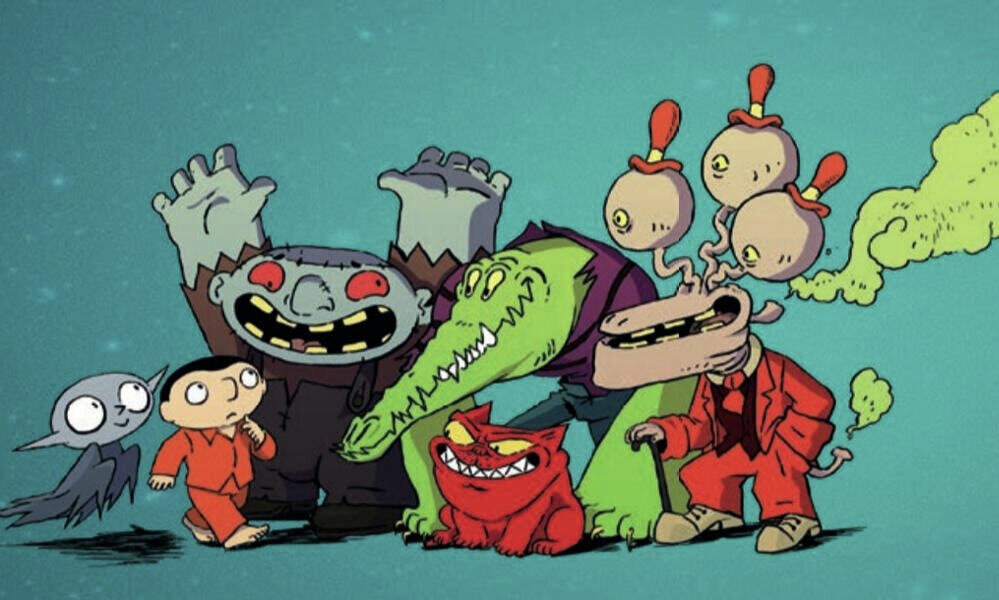 Принц Гиббиус, оставшись наедине с богом-жижей, вынужден дать тому обещание, что впредь будет служить тому. За это злодей получает бессмертие, которое тут же решает потратить на месть своей теперь уже бывшей возлюбленной. Пандора же вместе с сыном, оказавшись среди экипажа странного корабля, также получают право вечной жизни. Есть только одно но: Капитан Мертвых делает их вампирами. Так и появляется Маленький Вампир — мальчик, вынужденный коротать бессмертие в старом деревянном доме с призраками на отшибе какого-то небольшого французского городка. Единственным весельем является киноклуб, организованный в одном из подвалов особняка. Среди зрителей любитель скорости и жестокости крокодил-мутант Клод, результат химических и бактериальных опытов французов в тихом океане — Офтальмолог, и Моргелит — мини-версия чудовища Франкенштейна. А неизменным охранником от возможных неприятностей в загробном мире для Маленького Вампира выступает странный, как, впрочем, и все здесь, пес Фантомате.