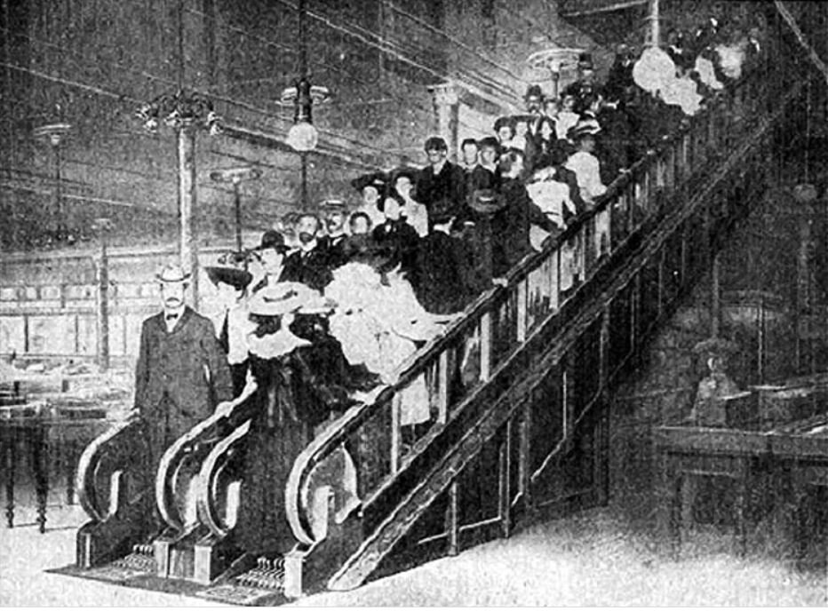 9 августа 1859 года американец Натан Эймс получил патент на первый в мире эскалатор, который он назвал «крутящейся лестницой». Но его идея так и не получила распространение, ни одной рабочей модели построено не было, а изобретатель и вовсе умер 1860 году. Только через 33 года другой американец Джесс Рено получил патент на более продвинутую идею эскалатора. В 1884 году устройство появилось в одном из парков Нью-Йорка, но не пользы ради, а для забавы, то есть как аттракцион. Правда, это был не сколько эскалатор в современном его понимании, сколько резиновое полотно, двигающееся под уклоном в 25 градусов. Более похожий на современный эскалатор прототип был запатентован Джорджем Уилером, патент которого приобрёл Чарльз Зеебергер. Он, в свою очередь, вскоре стал работать в Otis, где и был построен первый эскалатор. С тех пор их популярность постоянно росла. Сначала их можно было встретить в основном в крупных магазинах разных стран, а с 1911 года - в лондонской подземке. В СССР эскалаторы п