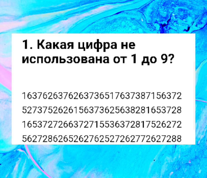 Здравствуйте, дорогие читатели! Проверьте своё внимание! Простые задания, которые улучшат вас! Приятного прохождения! Какая цифра не использована от 1 до 9? Справились? Идём дальше...... Найди число без пары (Например: 11 пара, 22114- у цифры 4 нет пары). 7711993300227766994466117722663355446600889966554488332211998877665544332255667700998877665544331166115599220066445511223399111778899440033882299336688447711 И последнее задание ↓ Найдиье лишний смайлик 💗💗💗💗💗💗💗💗💗💗💗💗💗💗💗💗💗💗💗💗💗💗💗💗💗💗💗💗💗💗💗💗💗💗💗💗💗💗💗💗💗💗💗💗💗💗💗💗💗💓💗💗💗💗💗💗💗💗💗💗💗💗💗💗💗💗💗💗💗💗💗💗💗💗💗💗💗💗💗💗💗💗💗💗 Готовы проверить результат? | | | ↓ Ответы: 1.9 2. 1 3.💓 Результат: 0 ошибок -🥇 1 ошибка - 🥈 2 ошибки - 🥉 3 ошибки - невозможно совершить, если совершили, стоит быть внимательнее На этом всё! Спасибо за прохождение! Если вам понравилось, ставьте лайки, подписывайтесь на канал, пишите комментарии!Удачи
