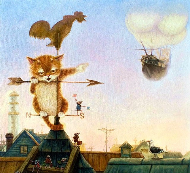 Неожиданно открыл для себя работы Александра Васильевича Маскаева —художника, который стал известен, благодаря своим сказочным картинам с участием кошек и мифологических персонажей. Сюжет не тривиален, достаточно необычно обыграна тема, как мне кажется. Александр Маскаев родился в 1959 году. Проходил обучение в Тюменском художественном училище. Является членом Союза Профессиональных художников России. В настоящее время живёт в городе Луховицы, Московская область. Работы Александра Маскаева участвуют в выставках и публикуются в печатных изданиях. Многие картины находятся в частных коллекциях как в России, так и за рубежом. Многим из вас наверняка могут показаться знакомыми эти работы, потому что один раз увидев картины этого талантливого художника, уже никогда их не забудешь. По моим ощущениям, картины создают некоторую атмосферу уюта, тепла. Ведь порой и взрослым нужна сказка))