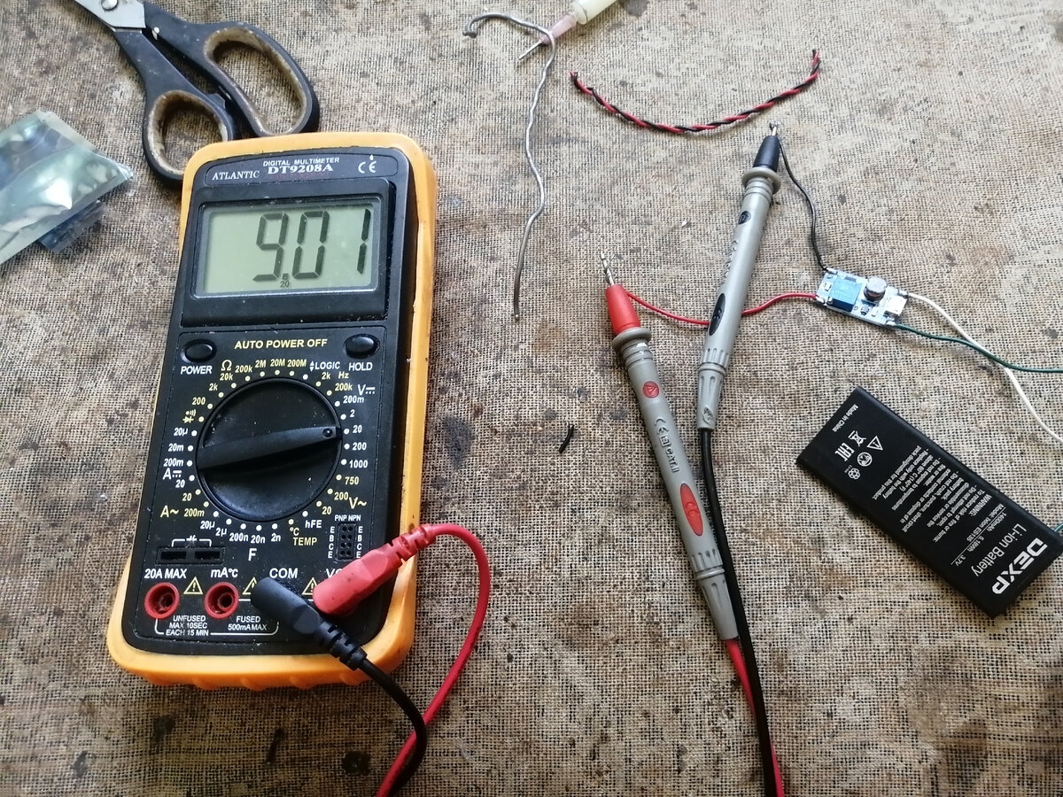 Всем привет. Хочу рассказать, как я отказался от покупки достаточно дорогих батареек типа "крона" и перевел все свои измерительные приборы на аккумуляторы. Для этого нам понадобится купить на алиэкспресс маленькие повышающие преобразователи. Я брал сразу 5 штук, цена вопроса 300р. Беру обязательно с юсб разъемом, чтобы было удобно заряжать. Выглядит это вот так, модули достаточно компактны и их можно установить почти в любую технику. На них все подписано, где вход и где выход, где плюс и минус. Для переделки понадобятся: собственно преобразователь, рабочий аккумулятор от мобильного телефона, несколько проводов и мультиметр. Аккумулятор подбираем по размеру, чтобы он влез в нужный нам прибор. Залуживаем провода и подпаиваем на вход и выход преобразователя. Там, где на преобразователе напсано vin припаиваем аккумулятор, соблюдая полярность. То есть плюс к плюсу, а минус к минусу. На аккумуляторе обычно также есть обозначения, если нет - то замеряем мультиметром. На преобразователе есть с