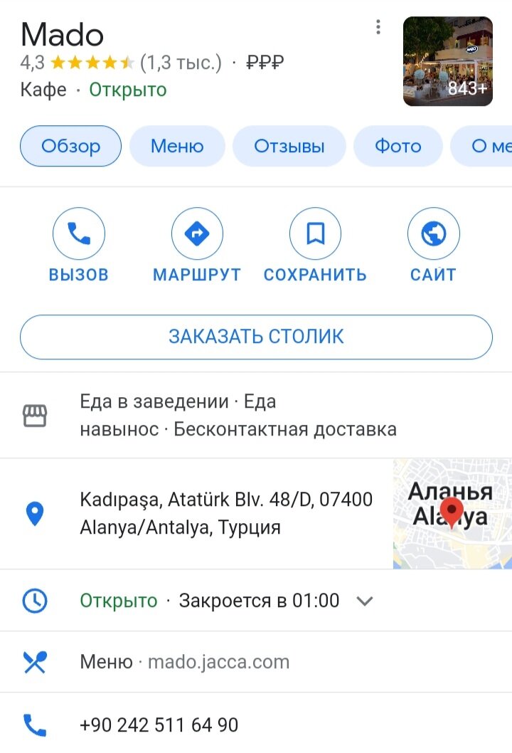 Продолжаем посещение вкусных мест в Аланье. Не специально конечно. Когда бродишь по городку, хочется где то душевно присесть и жевнуть. Вот Mado как раз из таковских мест. В нашем старом - добром Авсалларе есть одна прикольная кофейня, с легким флером обшарпанности. Эдакой аналог Mado. В оригинальном кафе, что в Аланье, вооот тут вполне себе культурно и приятственно. Чистенько, мебеля и публика на уровне. Меню по куэркодам. Отдельной строкой, хочется отметить нехилое количество страниц с десертами народов мира. Реально много. Есть не переесть. Растижопки. Ну и неплохое кофиё в придачу. В общей сумме за завтрак отдали лир 200. Наверное небюджетно, зато вкусненько и точка. Ну и за обед в виде плова, пасты, травяного чая, айрана - тоже 200. Всё по двести. Два раза за день, получается заходили. Ну и вечером на чай. Но это несчитово. И Кусто и Бельмондо, ели как то раз в Мадо. Пишем в рекомендации. Неплохое место.