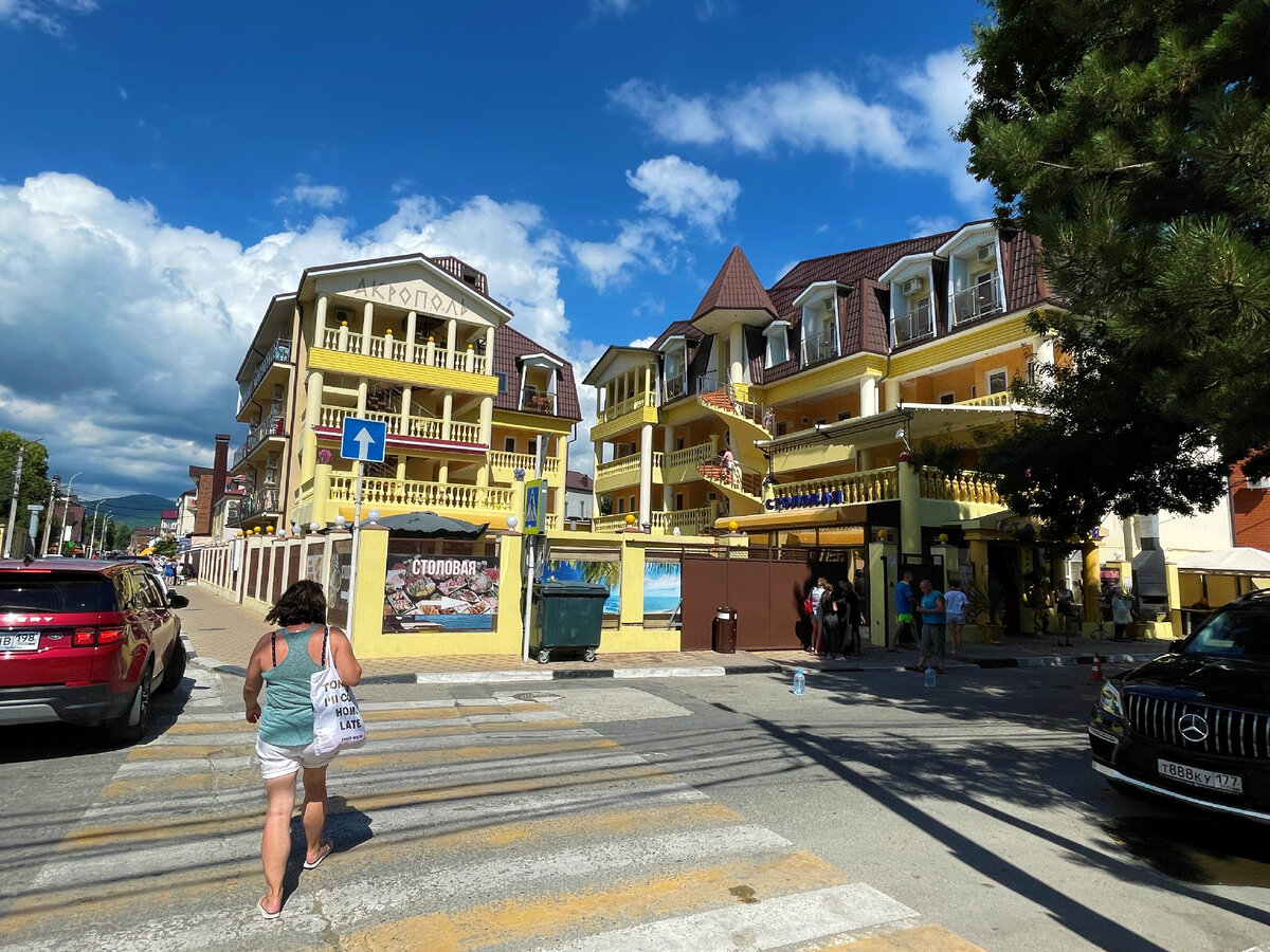 Можно-то можно, но не все так просто, сезон в разгаре и прежде, чем попасть в курортное село я обзвонила почти два десятка гостиниц, если не больше. Не раз слышала в ответ, что сейчас ситуация сложная и если мы подождем несколько дней, то, что-то освободится. Так получилось, что поездка в это село вышла спонтанной и, нам нужно было провести здесь неделю по личным обстоятельствам. Номер нужен был на троих взрослых (я, муж и дочь). Конечно, рассматривали все варианты гостиниц и отелей вблизи побережья. Везде или были отказы или цена нас не устраивала. Рассчитывали заплатить за номер не более 4-4,5 тысяч рублей. Но и вариантов за 6 000 рублей, которые нас не устраивали, оказалось тоже не так много. Похоже, что сейчас деньги мало кого волнуют, главное отдохнуть, а зарабатывать будем потом. И, доходы у всех разные, для кого-то 6000 рублей в сутки для гостиницы не деньги. Все живем по-разному. Но и надо отдать должное, что вы получите за эти 6000 рублей? Хорошо, если бы номер был отличный