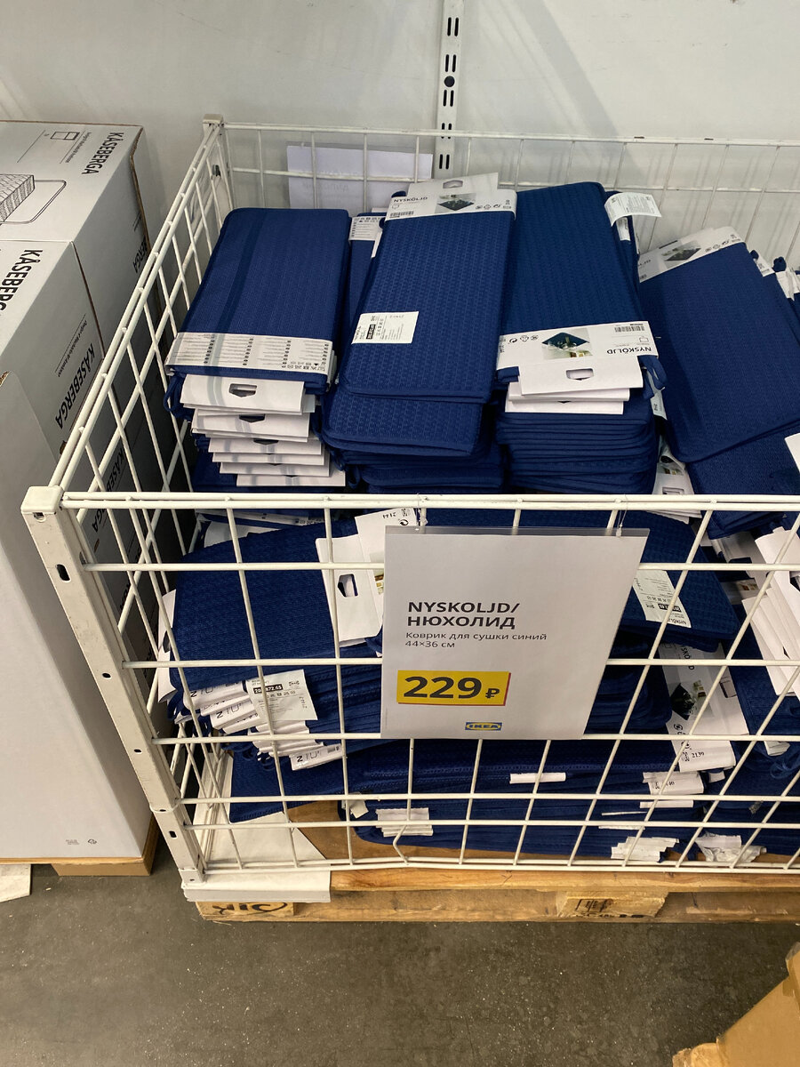 Всем привет! Поклонники Икеа знают, что в магазине организована онлайн-распродажа товаров из остатков. Но оказалось, что часть можно купить в розничном магазине. На примере ТЦ Мега Белая дача в Москве покажу, какие товары еще остались. В зоне выдачи сделали небольшой павильон с одной кассой. Все происходит живенько и организованно. Коврики Нюхолид я обожаю. У меня дома зеленого цвета. Отлично впитывают влагу. Я заказала впрок 2 синих коврика для сушки посуды в онлайн и еще 2 купила в оффлайн)) Позже я опубликую статью со своими покупками. Далее я буду часть фотографий загружать в галерею, чтобы не занимать много места в статье. Просто листайте вправо. Если нет стандартных ценников, то стоимость можно найти на заводских коробках. Знаете, когда у тебя в голове возникает мысль, что чего-то больше в продаже не будет, то волей не волей начинаешь кидать в корзину все, что видишь. Но через минуту просыпается разум. У меня так было со стеклянными мисками. Положила в корзину, а потом вылож