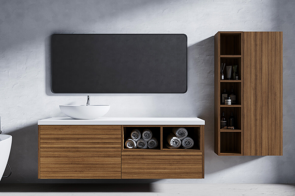 Иными словами, это скорее не экономия места, а экономия на себе и на своих удобствах. Мало какая техника в ванной действительно может встать так, что именно отсутствием нижнего шкафчика придётся компенсировать недостаток места под неё.