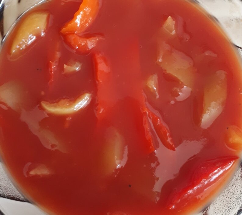 Здесь нет масла, моркови и лука, только помидоры, перец и чеснок. Кто-то может сказать, что это не лечо, а просто перец в томате. Да, пусть будет перец в томате, но результат великолепный! Это очень-очень вкусно. Получается превосходный натуральный вкус. Пользуюсь этим рецептом лет 20 уже. Поделилась со всеми родственниками и знакомыми. Сегодня предлагаю и вам присмотреться к этому рецепту. Просто, быстро, невероятно вкусно! Расход продуктов на порцию с выходом готового продукта на две 1л-банки и три 600г- банки: 1. С помидоров желательно снять шкурку. 2. Половину помидоров -1,5кг- порезать мелкими кусочками и поставить варить на очень маленький огонь под крышку. Варить 10 минут. 3. За это время порезать остальные помидоры и перец. Перец режу не очень мелко. Заложить в кастрюлю, добавить соль и сахар, варить еще 20 минут, постоянно помешивая шумовкой. 4. Под конец положить чеснок и всего 1 стол.ложку укуса 9% на всю массу. Сразу, горячим, разложить по чистым стерилизованныи банкам