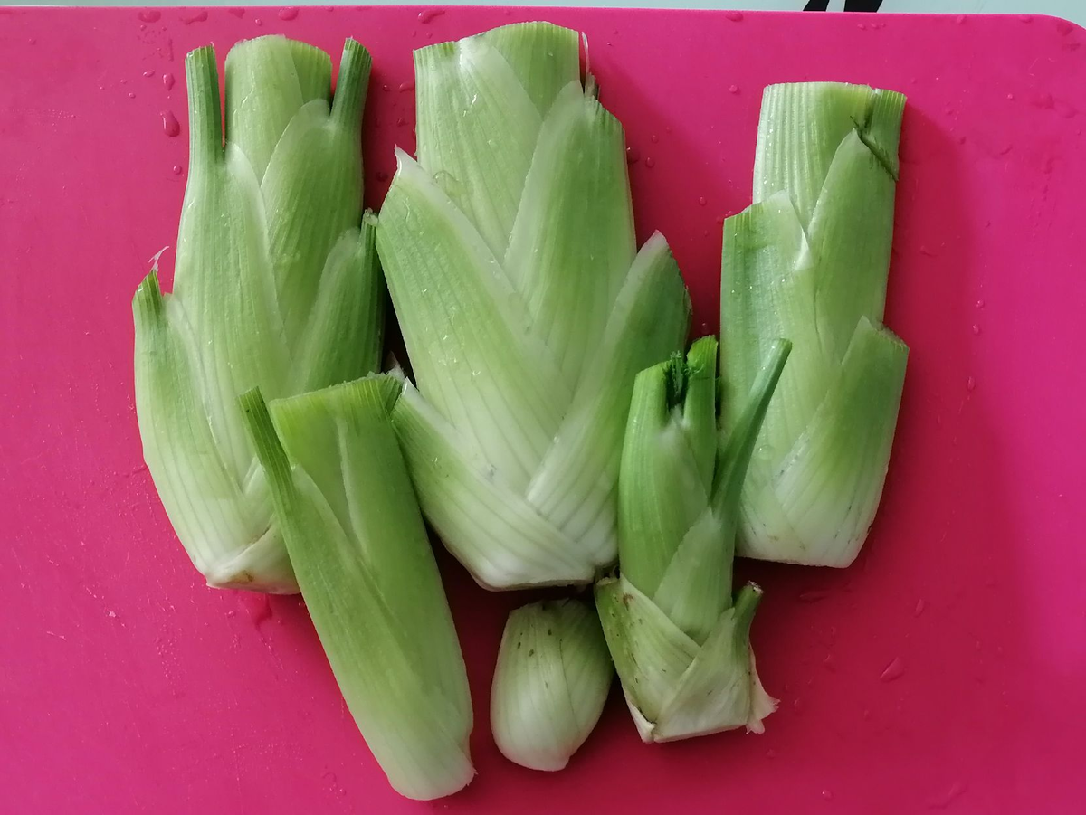 Вырастила в этом году впервые кочанный фенхель. И вообще впервые вырастила фенхель. У кочанчиков есть преимущество - это не зелень, а вполне себе овощ (утолщенные листовые пластины, как у капусты), который может стать одним из основных ингредиентов в блюдах. Как выращивала по советам моих читателей, рассказала: Теперь буду есть. Начать решила с самого простого - салата из свежих кочанчиков. Рецепт салата из фенхеля Конечно, стырила его из интернета, но переделала на свой лад. Я знаете, как рецепты изобретаю? Гуглю ингредиенты, которые есть в наличии. Если находятся рецепты с ними, значит, совместимы. Смело готовлю, как сама придумаю. Так и с фенхелем получилось. Выращивала его чуть на пробу. Все, что у меня наросло. Для салата оставила самую мелочь, а два покрупнее убрала в холодильник для более серьезных блюд. Фенхель сладкий, поэтому подобрала сладкие ингредиенты со своего участка - молодую морковку и несколько ранеток с яблони Аленушка. Всего примерно поровну - по 100-150 г. Готовк