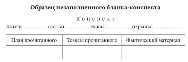 Одной из важнейшей составляющей учебы являются книги. Прочитанный материал становится знанием или докладом для выступления. Для качественного освоения прочитанного материала в целях обучения или самообразования необходимо знать структуру прочитанного текста, то есть составить план, тезисы и конспект прочитанного. Под конспектом прочитанного мы понимаем краткое изложение прочитанного на бумаге. Как же составляется конспект прочитанного? Да, очень просто, в состав конспекта должны входить три основных элемента: план, тезис и фактический материал. Давайте рассмотрим пример оформления конспекта: Это совсем не значит, что мы не может отдельно составлять план и выписывать отдельно тезисы. Иногда есть необходимость только в составлении вопросов, которые затрагиваются в прочитанной нами книге. Только в данном случае составляется план. А иногда есть необходимость выделить мысли из прочитанной книги и для краткого оформления записи лучше использовать тезисы. Под планом прочитанного мы понимаем п