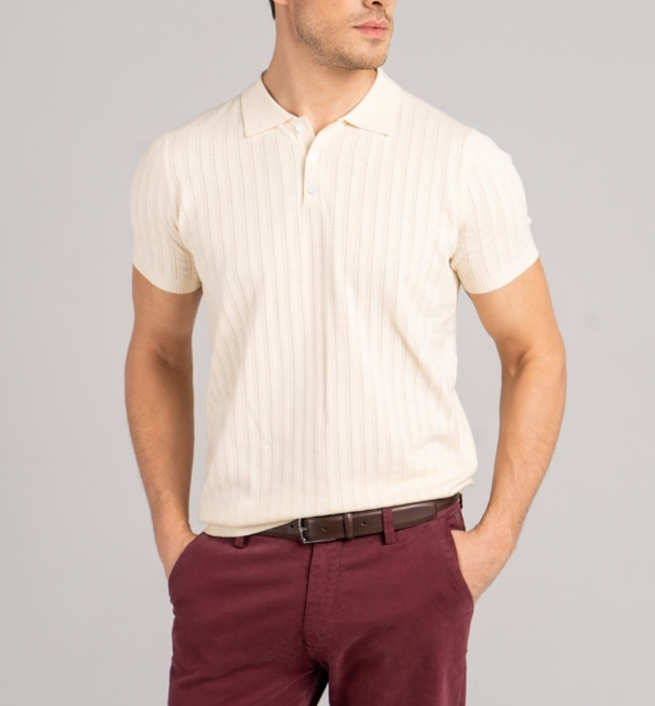 Артикул: 59880362 Мужская футболка-поло кремового цвета. Модель с прямым кроем, отложным воротником, удачно садится на любой тип фигуры.