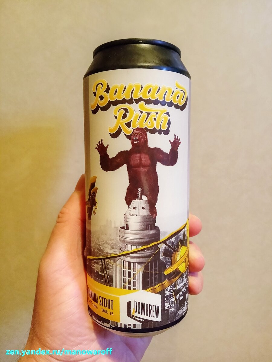 Продолжаем знакомиться с пивом домодедовской пивоварни DomBreW, несколько сортов которого можно найти в сети магазинов "Отдохни". И сегодня это будет молочный стаут Banana Rush. По названию можно заподозрить, что стаут не просто молочный, а еще и с бананом. А описание подсказывает, что там есть еще и шоколад: Banana Rush - молочный стаут с бананом и шоколадом.
