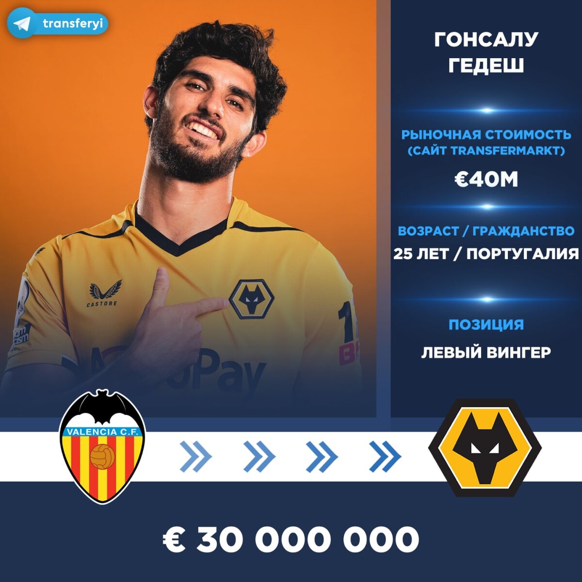 Официально: Гонсалу Гедеш стал игроком «Вулверхэмптона».