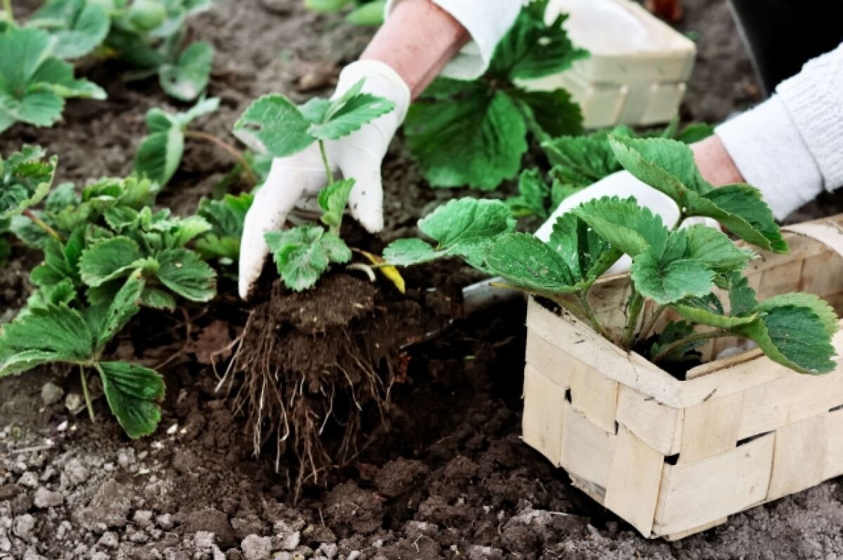 Аккуратно выкопайте рассаду из маточника. Для профилактики поражения вредителями (земляничный клещ, нематода) опустите корни рассады в горячую воду (46—47°C) на 15 минут, а затем в прохладную. Можно обмакнуть корни в болтушку из глины или обычной садовой почвы и воды, а также добавить стимуляторы роста и корнеобразования, гуматы.