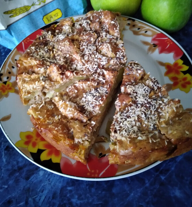 Очень захотелось шарлотки... 3 яйца, заменитель сахара взбила, добавила стакан овсяной муки и разрыхлитель. Перемешала. Получилось очень густая смесь. Пришлось добавить полстакана кефира. В получившееся жидкое тесто добавила 4 нарезанных (не мелко яблока). Яблок больше, чем теста. Тесто - лишь для того, чтобы соединить между собой яблоки. Перемешала, выложила в смазанную маслом форму. Сверху посыпала корицей, маком и кокосовой стружкой. Пекла около часа при 160 градусах, и до остывания оставила в духовке. Запах яблок с корицей такой стоит в квартире, что не передать словами! Шарлотка превзошла все мои ожидания. С овсяной мукой шарлотку испекла в первый раз. Больше общения и рецептов - в группе "Рецепты для диабетиков" в ВКонтакте! Рецепт на странице Автор рецепта – Елена Прядко
