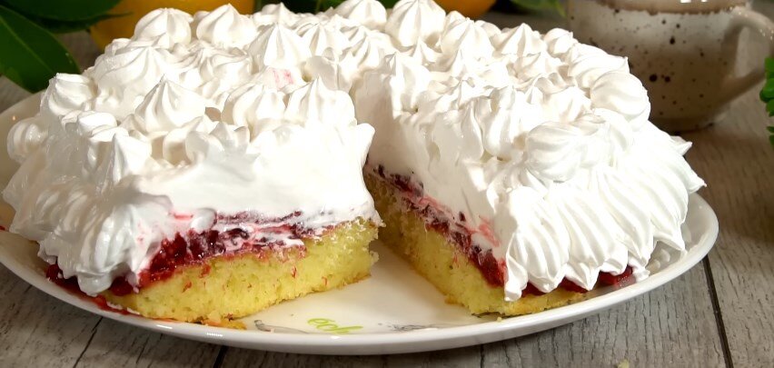 Привет! Сегодня хочу поделиться рецептом Торта «Стаканчик варенья» с белковым кремом, готовится проще простого. Уверена, попробовав такой тортик Вы полюбите его не только за вкус, но и за скорость приготовления. Кстати, можно приступать к дегустации сразу после сборки. Рецепт: Для основы: Для белкового крема: Для ягодной прослойки: СПОСОБ ПРИГОТОВЛЕНИЯ Итак приступаем, сначала займемся приготовлением основы. Разделим 2 яйца на белок и желток. Белки отставляем в сторонку, они нам понадобятся для приготовления крема. В миску кладем желтки, добавляем 30 грамм сахара, 20 грамм ванильного сахара щепотку соли и взбиваем миксером до того момента как масса побелеет. Добавляем 100 грамм сметаны и добавим 100 грамм растопленного сливочного масла (масло должно быть теплым)