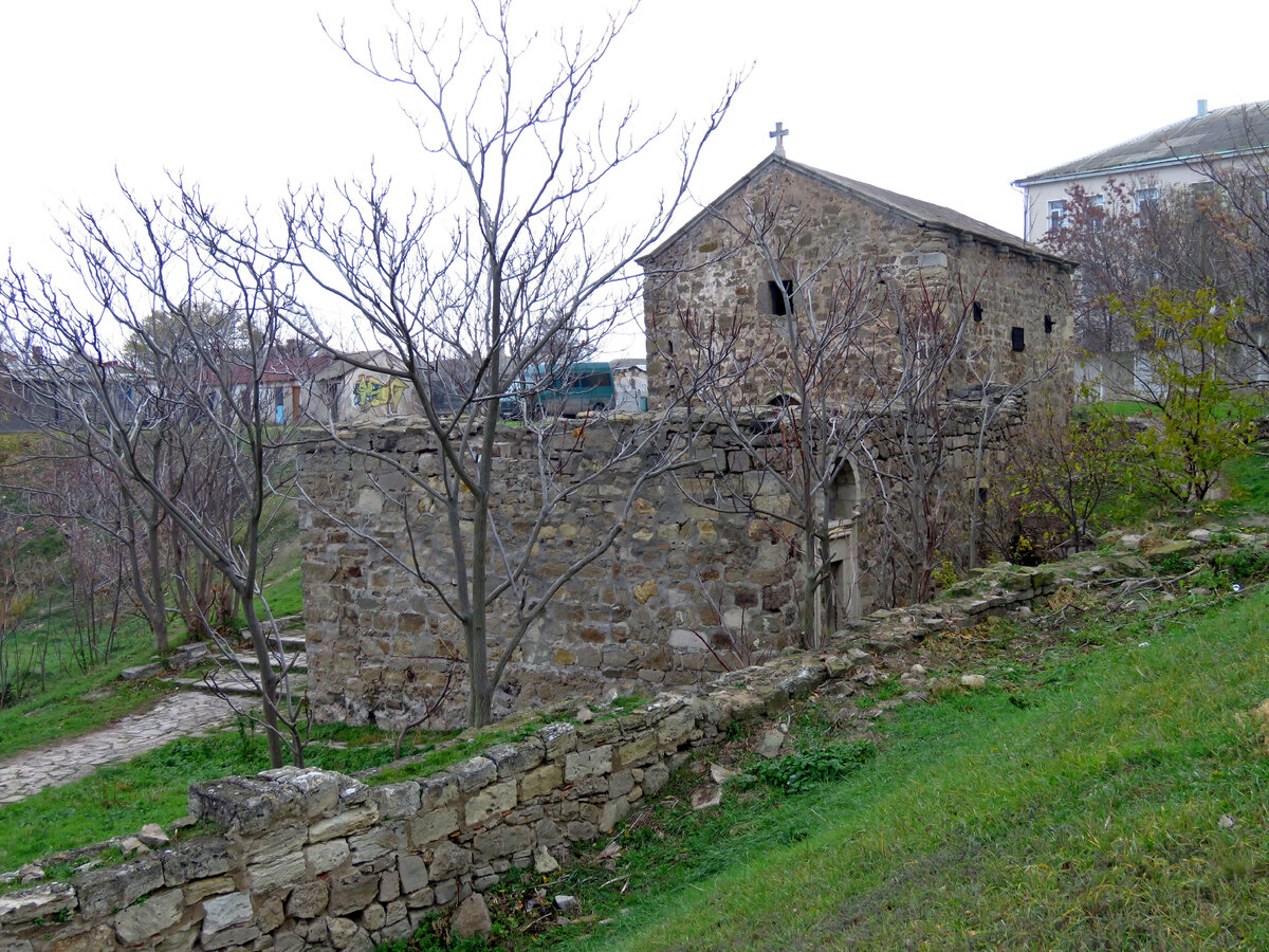 Эту часть хочется начать словами Анастасии Цветаевой из книги"Воспоминания" - «Когда мы увидели феодосийские улицы, Итальянскую (главную) улицу с арками по бокам, за которыми лавочки с восточными товарами, бусами, сладостями, когда сверкнул атлас, рекой разливающийся по прилавку, и его пересек солнечный луч, золотой воздушной чадрой протянулся под арку – и когда из-под арки вышли два мусульманина, унося плохо завернутый шелк, и брызнула нам в глаза синева с плывущими розами, - бороды черней ночи показались нам со страницы Шехерезады, ветер с моря полетел на нас – из Стамбула! И мы поняли, что Феодосия – волшебный город и что мы полюбили его навсегда». От одних эти слов, даже не видя города, можно в него влюбиться! Что-то потянуло меня на сестер Цветаевых. А это все потому, что моя подруга долгое время работала в музее сестер Цветаевых и много мне рассказывала о них во время наших длинных прогулок. Ну вот мы и зашли на территорию крепости. Справа от входа расположена церковь Иоанн