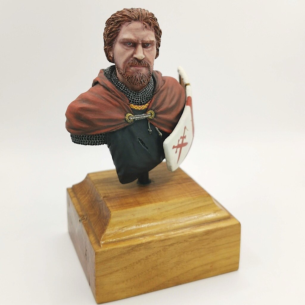 Сегодня - бюст какого-то кнехта из Тевтонского ордена, которого я решил сделать Ливонцем. Был давным-давно подарен старым знакомым и находился в "ящике позора" в частично готовом состоянии много-много лет. Этим летом в отпуска под реанимацию навыка работы масляными краскаями, я его взял - достал из ящика, докрасил, и закончил. Окрашено акрилом и масляными красками.