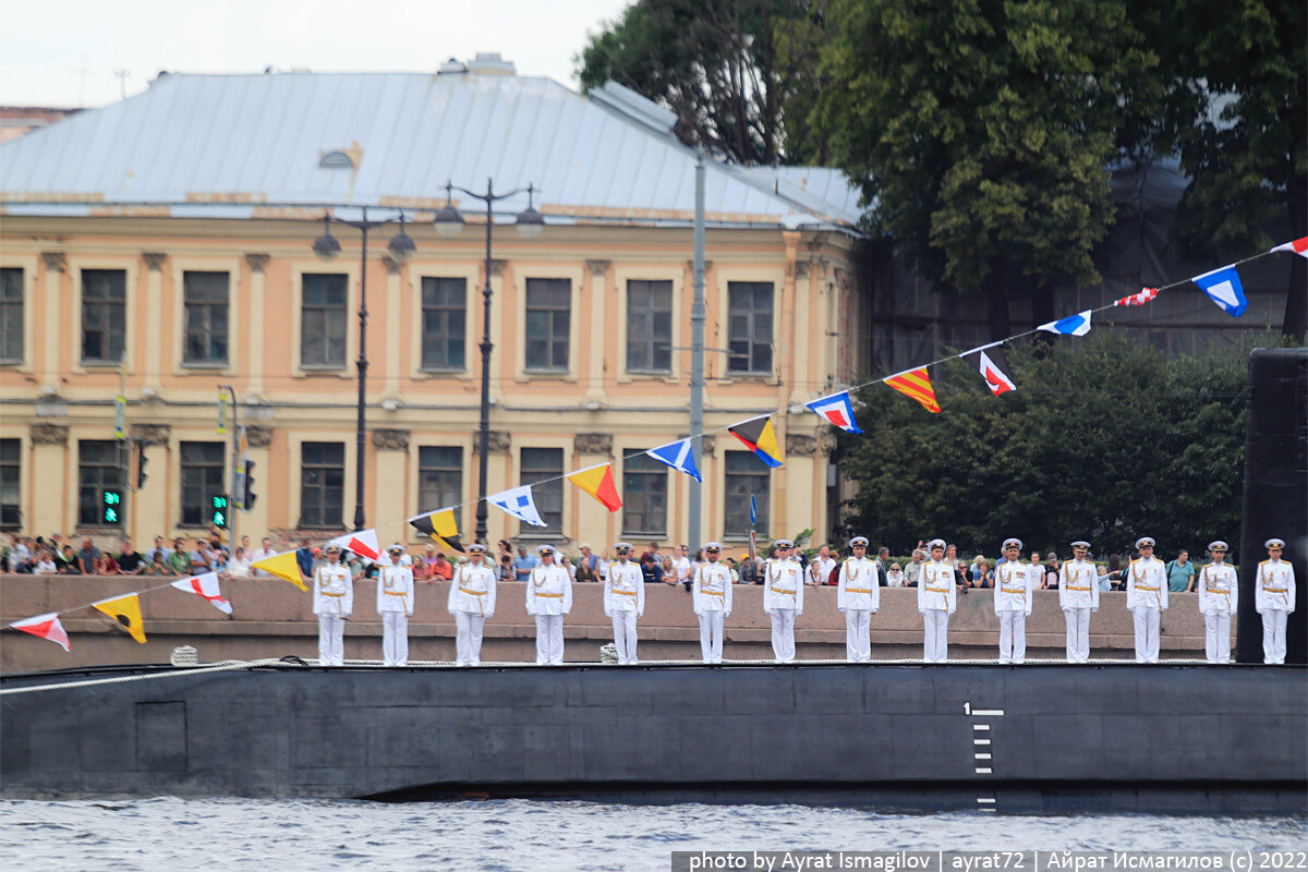 Вынесенную в заголовок фразу, пожалуй, можно сказать в отношении нескольких городов России. И все же в Санкт-Петербурге это ощущается гораздо острее. В ходе нашего летнего путешествия мы побывали в Северной столице в аккурат за неделю до праздника и застали в городе генеральную репетицию. Горожан и туристов собралось весьма немало. Напротив Медного Всадника - флагман будущего парада - фрегат "Адмирал Горшков". "Адмирал Горшков" один из самых технически совершенных кораблей российского флота. Во время репетиции есть уникальная возможность увидеть мосты на Неве разведенными в дневное время. Парад в Северной столице считается Главным военно-морским парадом ко Дню ВМФ. В параде впервые примет участие женский экипаж. Увы, в кадр на репетиции я их не поймал, но видел на берегу, когда проходил мимо. Мы наблюдали за репетицией с Английской набережной. Думаю, это одно из лучших мест. Парад это не единственное, что предполагается в праздник. Также планируются гонки парусных яхт, залпы орудий, а