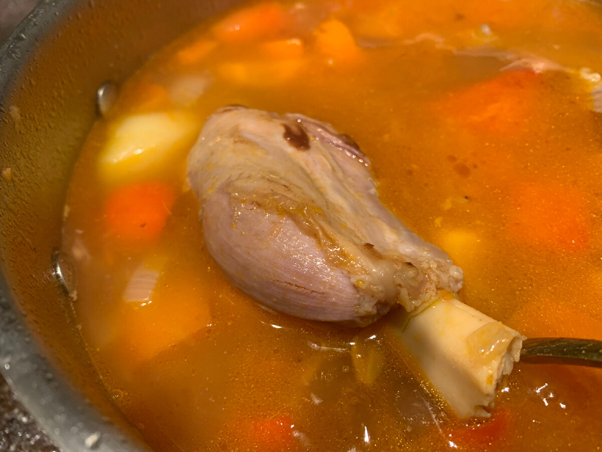 Простая в приготовлении, густая и сытная похлебка с бараниной. Готовим, не теряя времени. Все по порядку. Идеальное соотношение продуктов - всего поровну. На 3х-литровую кастрюлю: по 500 граммов баранины с косточкой и по столько же очищенных овощей : репчатый лук, морковь, картофель, сладкий перец, томат. Немного масла, буквально 2 ложки. Специи , соль, чеснок и зелень добавят остроты и вкуса. Куски баранины обжариваем на сильном нагреве, чтобы сверху образовалась корочка. После этого, при варке бульона не будет пены. Добавим крупно нарезанный лук и морковь, пожарим до вкусного аромата. Пока идёт обжарка, ставим чайник, чтобы нагреть воду. Переложим жаркое в кастрюлю Зальем крутым кипятком Оставим вариться при слабом кипении на 30-45 минут. Время зависит от качества баранины. Чем больше жил, тем дольше варка. А, пока спокойно почистим картофель, ошпарим томат и снимем с него шкурку, освободим сладкий перец от семечек и плёнок. Сначала 3 минуты обжарим нарезанный перец, за